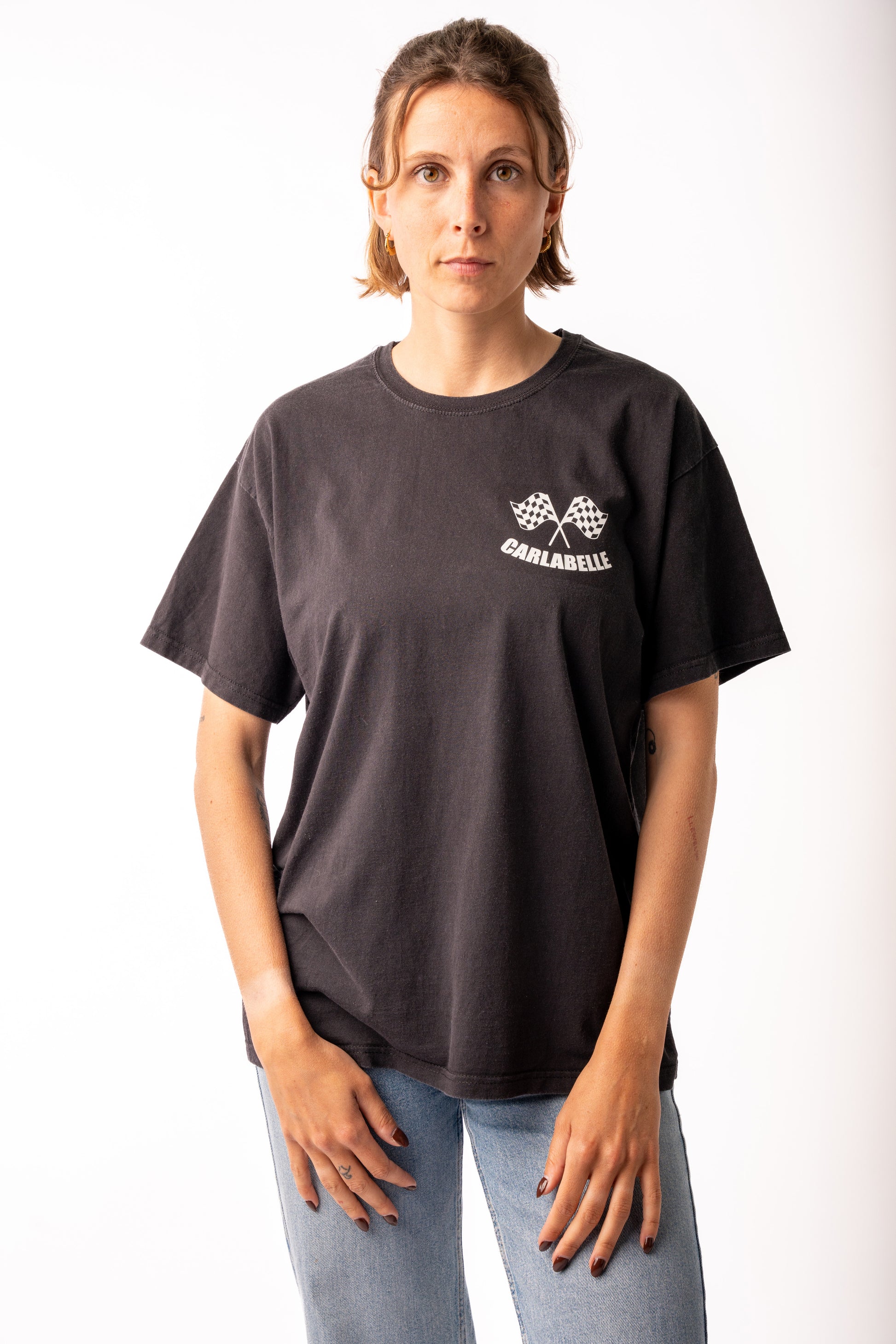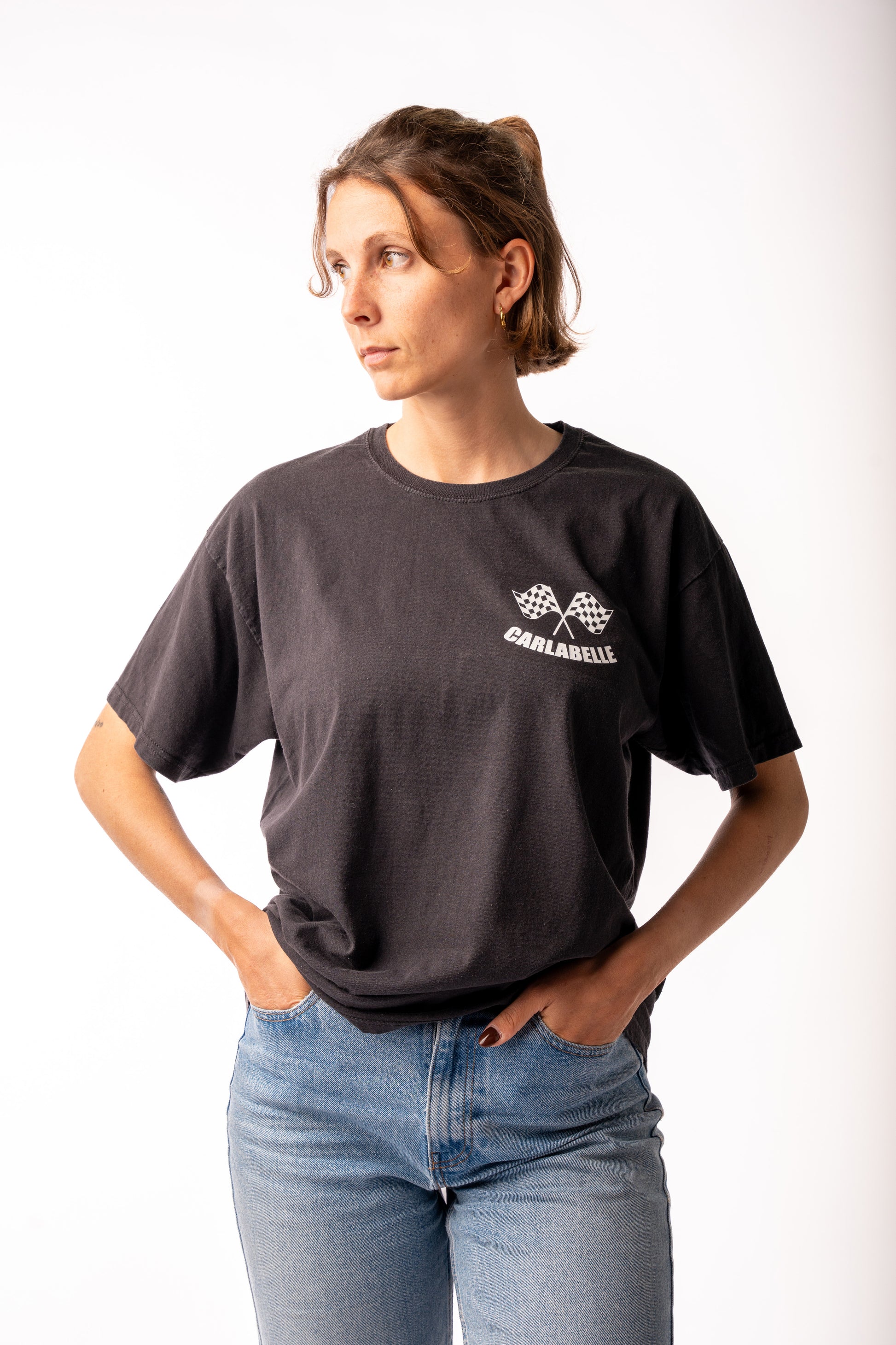 Vintage black T-shirt with the original CARLABELLE print. Soft cotton, light wear, and a close fit.