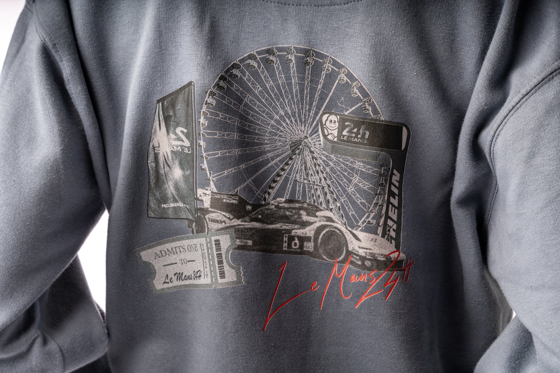 Vintage grey blue polo sweater with the original CARLABELLE print. Soft knit, relaxed look, and an easy fit.
