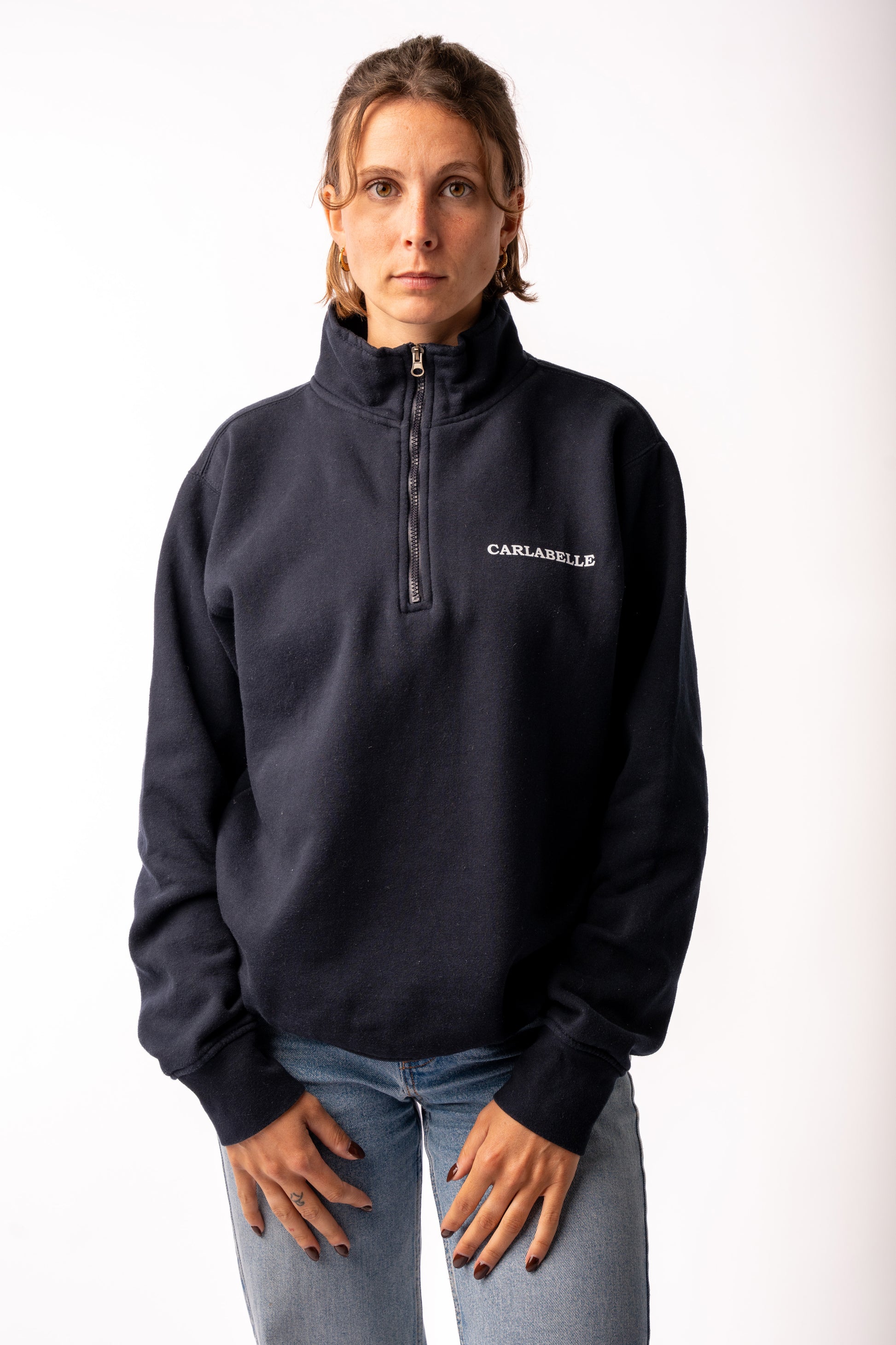 Vintage navy quarter zip sweater with original CARLABELLE print.